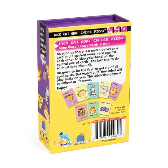 Race your friends in this hand slapping, laugh inducing, action packed version of the wildly popular, Taco Cat Goat Cheese Pizza. But - watch out! You can easily be fooled with its crazy reversed twist! This game is fast, fun, and friendly ... and all in 8 bit.
